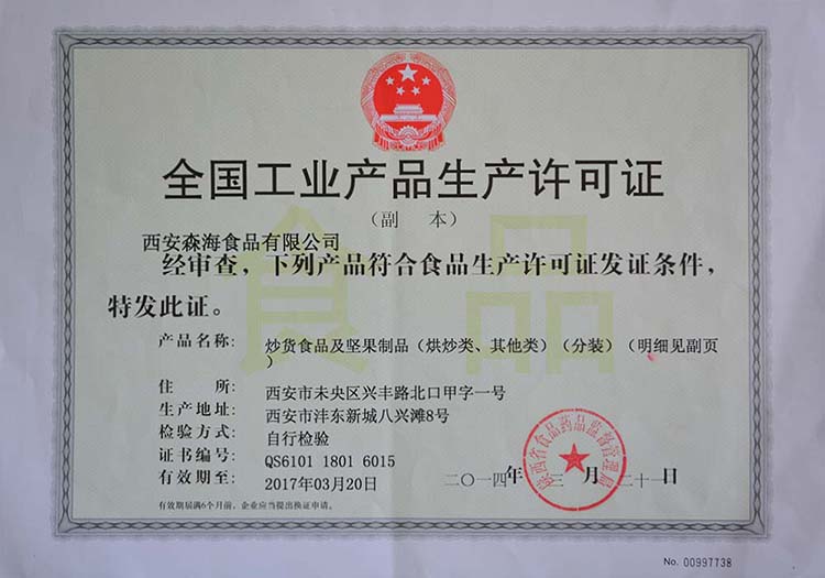 西安森海食品有限公司是一家从事农产品加工的专业企业。公司始建于2007年9月,地址位于古城西安未央区朱宏路59号,占地面积5000平方米。主要产品涉及,红枣系列,杂粮系列,蜜饯系列,干制食用菌系,坚果及炒货系列产品等。汇集陕北、关中、陕南久负盛名土特产品,并在东方红的故乡陕北佳县建有“佳县森海食品有限责任公司”,专业的红枣、杂粮加工厂及红枣种植基地。产品销售遍及**各地。